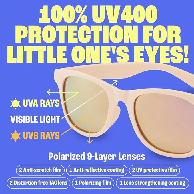 Miljövänliga; Med återvinningsbara material och miljövänlig förpackning som matchar skyddar dessa barnsolglasögon ditt barn samtidigt som de skyddar planeten.